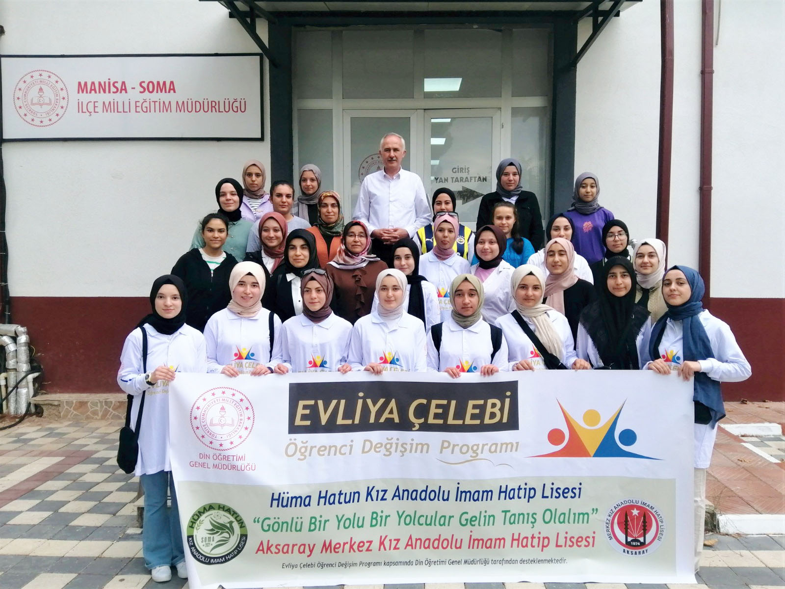 Evliya Çelebi Öğrenci Değişimi Programı çerçevesinde Aksaray Merkez Kız Anadolu İHL öğrencileri Hüma Hatun Kız Anadolu İmam Hatip Lisesine geldi. Hüma Hatun Kız Anadolu İmam Hatip Lisesi, Evliya Çelebi Öğrenci Değişim Projesi kapsamında Aksaray’dan proje ortağı öğrencileri ve öğretmenleri İlçe Milli Eğitim Müdürü Mustafa Dikici’yi ziyaret etti. MEM Mustafa Dikici ile Aksaray’dan gelen öğrenciler ile sohbet ederek başarılarının devamını diledi. Misafir öğrenci, öğretmen ve yöneticiler 1 hafta boyunca Hüma Hatun Kız Anadolu İmam Hatip Lisesi ile birlikte projelerini yürütecek ve birbirinden farklı etkinliklere iştirak edecekler.