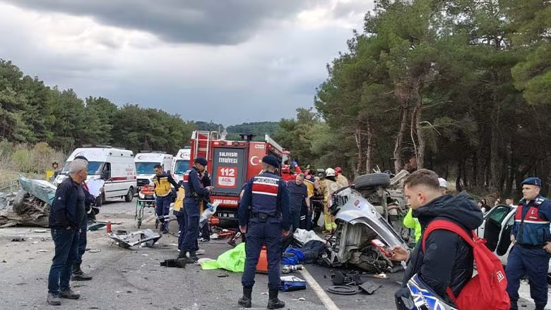 Savaştepe Soma arasında 4 aracın karıştığı zincirleme trafik kazasında 2 kişi ölürken 12 kişi yaralandı.