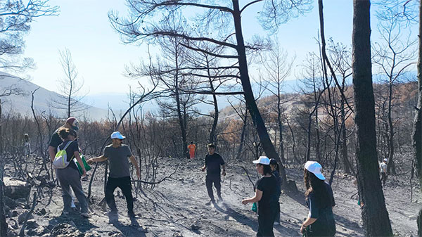 Turgutalp mevkiinde 11 Ağustos 2025’te çıkan yangında zarar gören 300 hektarlık ormanlıkalana, Soma’nın düşman işgalinden…