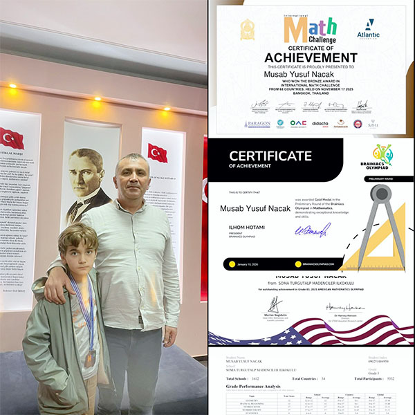Soma Bilim ve Sanat Merkezi Müdürü Umut Kocabıyık, kurumumuza, ilçemize bu büyük başarıyı yaşatan öğrenci ve öğretmenlerimize teşekkür ederek, tebrik ettiklerini belirtti.