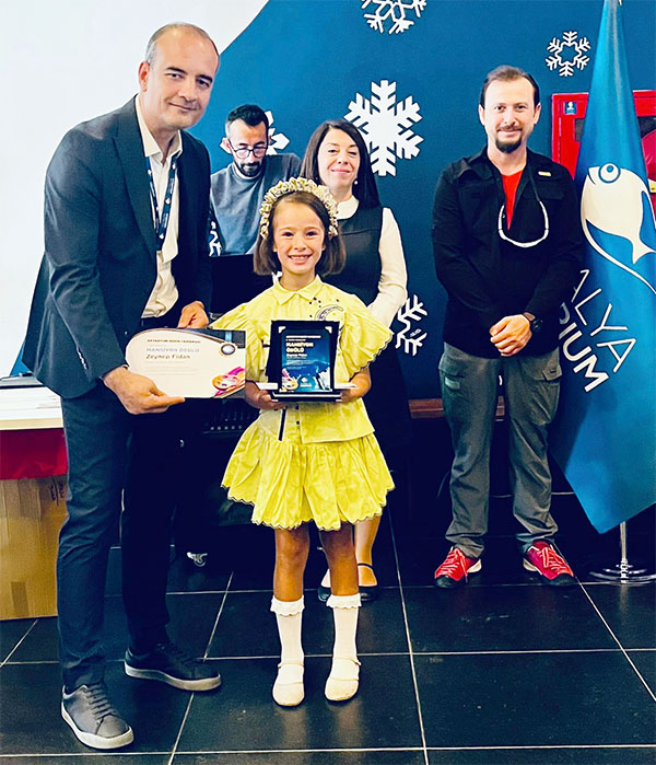 Zeynep’in ödülü, Antalya Aquarium yönetimi tarafından düzenlenen törenle takdim edildi. Başarısından büyük mutluluk duyan Soma Ertuğrul Gazi İlkokulu yönetimi, öğrencilerini okulda ayrıca ödüllendirerek başarısını kutladı.
